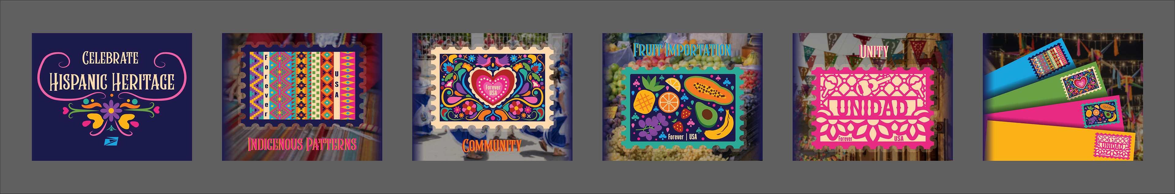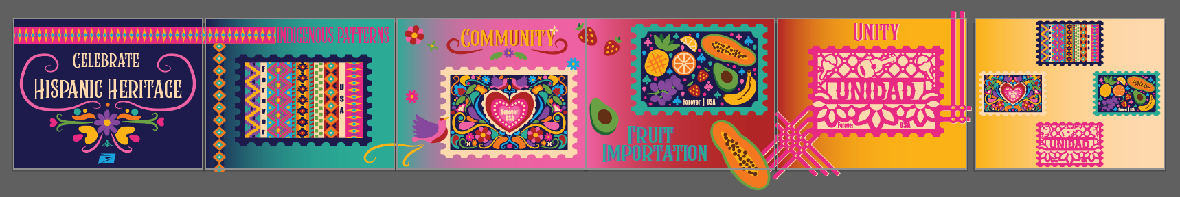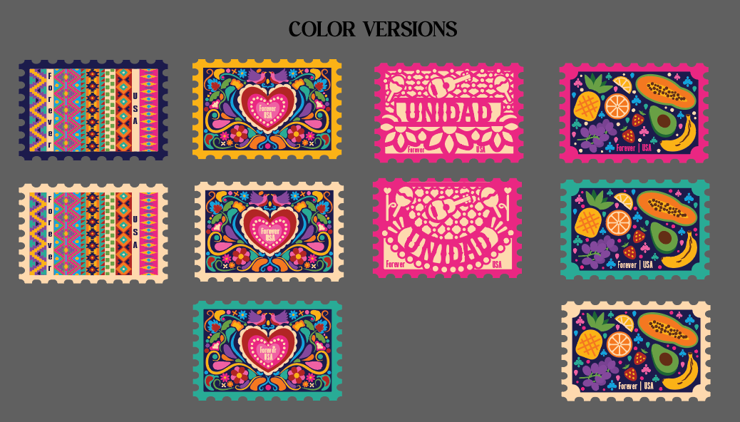 Inspired by the rich diversity and vibrant beauty of Hispanic culture, I designed a series of stamps that capture the unique elements of this dynamic celebration. Each stamp highlights various aspects of heritage, community, and the colorful traditions that unite Hispanic cultures, offering a visual tribute to their profound impact on American society.