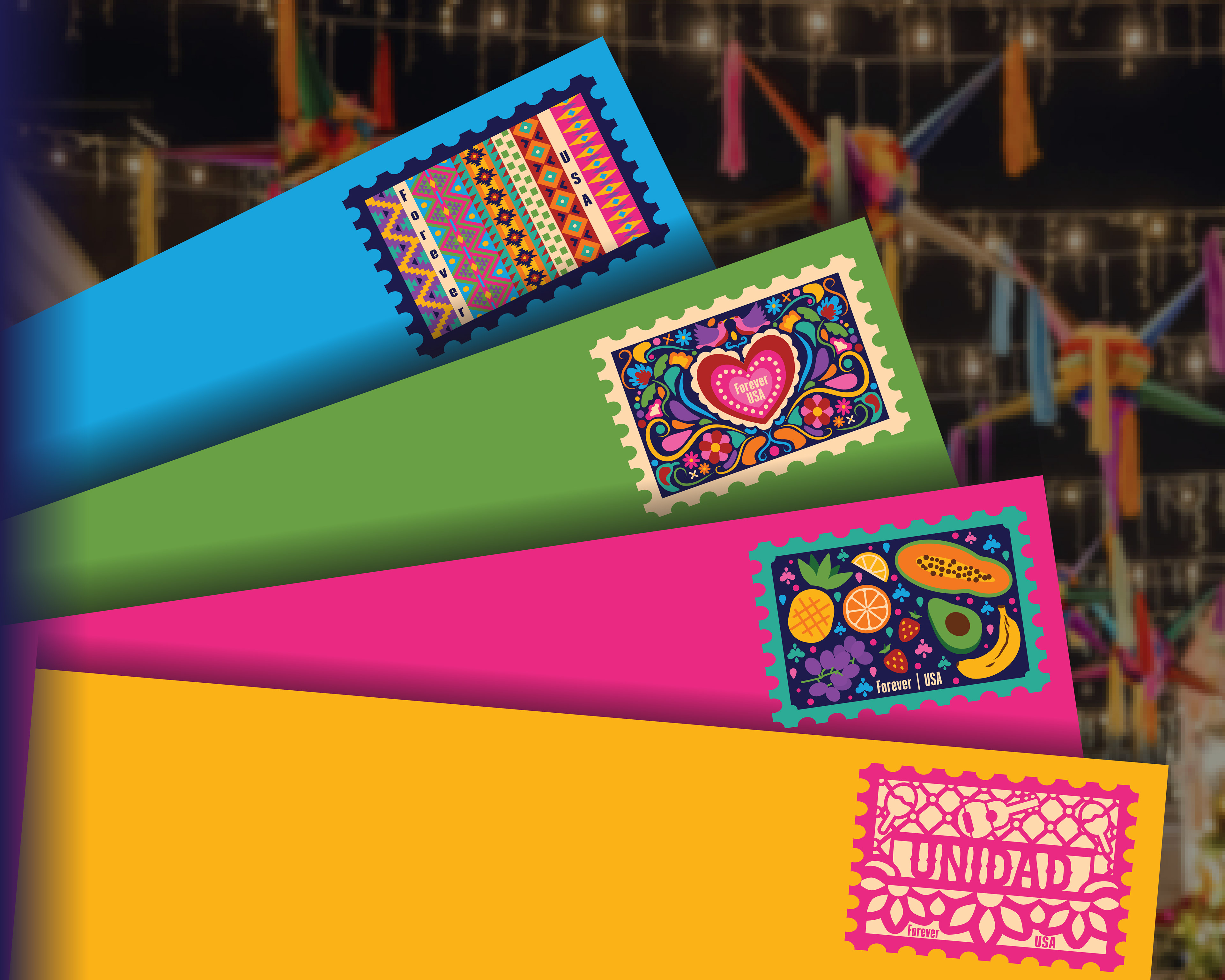 - Papel Picado (Unity): Uses colorful papel picado to symbolize communal joy and connection during celebrations.