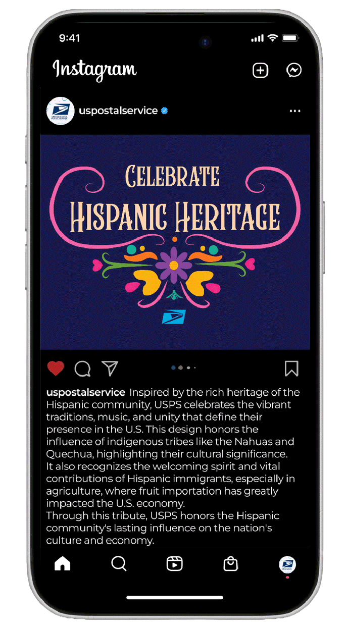 The final deliverable was an Instagram carousel post designed as if it were published by the official USPS account, promoting the Forever Stamp campaign for public purchase. The carousel functions as a digital interface, allowing users to scroll through images that highlight each stamp individually as well as the collection as a whole.