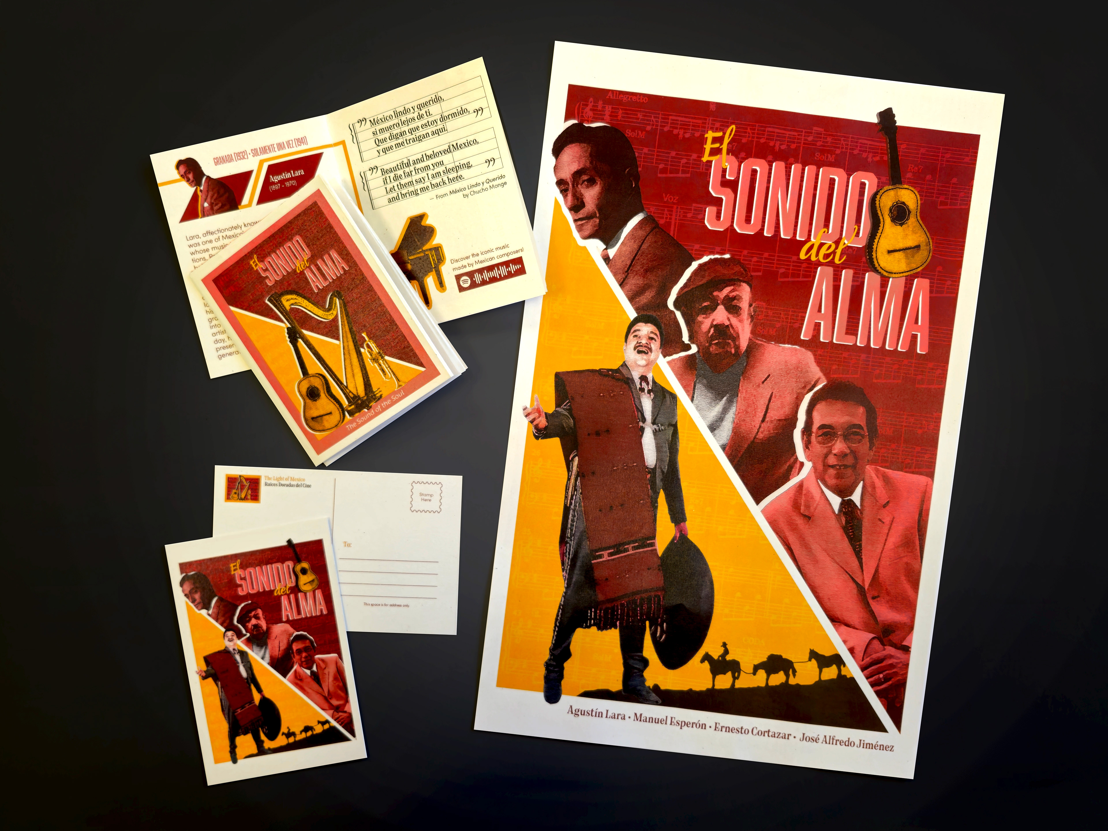 Many foreigners know little about Mexico beyond stereotypes, often overlooking its rich cultural contributions to global art and cinema. The Cine de Oro era (1930s–50s) defined Mexican identity through iconic films, actors, and music, yet its influence remains underrecognized internationally. There is an opportunity to design a visually powerful system, such as postcards, posters, or collectible printed material that showcases and reintroduces this golden age of cinema, creating a cultural bridge that both educates foreign audiences and strengthens pride among Mexicans in their heritage and filmmaking legacy.