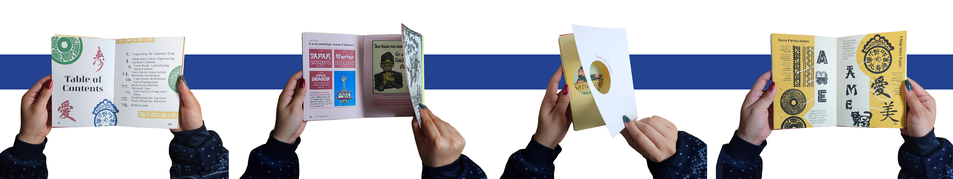 From conceptualizing the narrative to resolving printing and alignment issues, every step required adaptability and problem-solving. The project deepened my understanding of typography's role in shaping cultural perceptions and reinforced the importance of accurate, respectful representation in design. Incorporating feedback, experimenting with materials, and assembling the book by hand added a personal and meaningful touch. Ultimately, this experience not only enhanced my technical skills but also strengthened my commitment to culturally inclusive design and challenging conventions in future work.